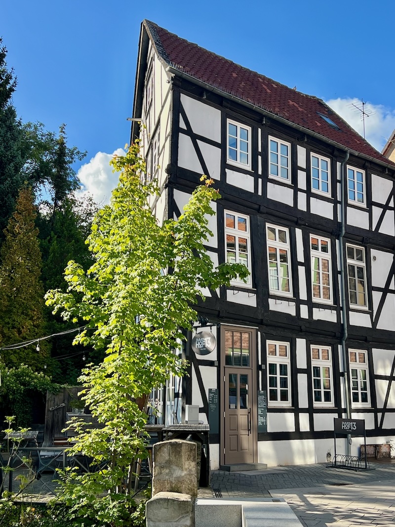 Auf dem Rückweg entdecke ich das schmalste Haus der Stadt am Kleinen Zimmerhof, die Traditionskneipe „Theo“ und das Restaurant Zimmerhof13 wo ich den Tag bei regionaler Küche in einem liebevoll restaurierten Fachwerkhaus ausklingen lasse.